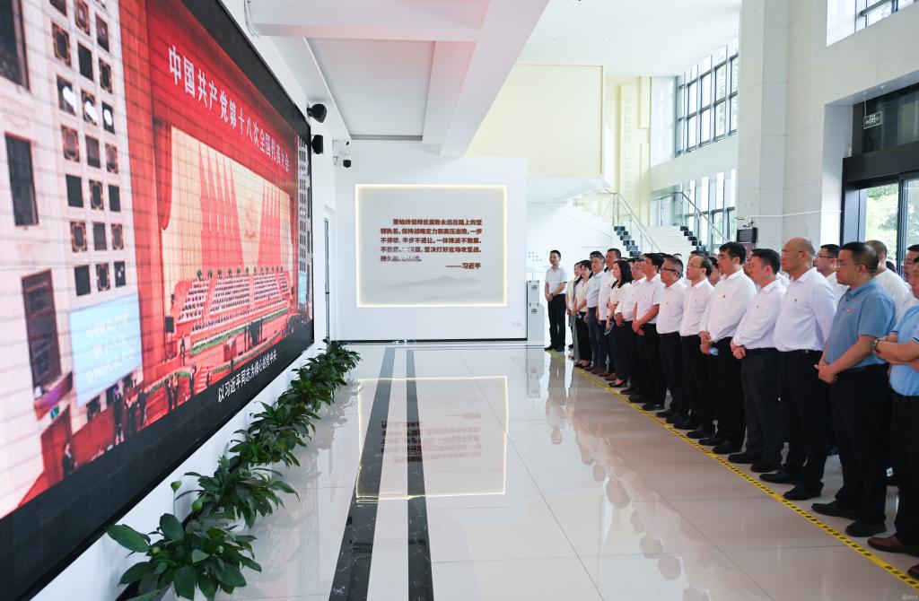 在警示教育基地大厅,全体人员集中观看了“激浊扬清,正气黔行”警示教育专题片。随后,在讲解员的引导下有序参观了基地“反腐败斗争必须永远吹冲锋号”“守住纪法的底线”“领导干部利用茅台酒谋取私利问题专项整治专题展”“防止人性的贪婪”“扣好人生第一粒扣子”“组织才是最大靠山”等六个主题展厅。展厅内通过详实的案例介绍、视频影像,对多起全省查处的重大典型腐败案件进行了深刻剖析,为全体党员干部上了一堂发人深省的警示教育课。